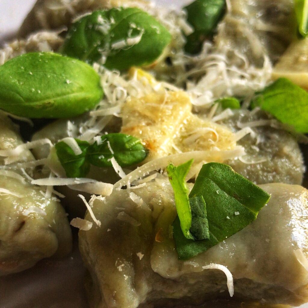 Z czym to jeść? Jak to kluseczki – z sosem albo jako dodatek do dania głównego. Ja uwielbiam polewać je masłem z podsmażonym czosnkiem, do tego odrobina parmezanu, bazylii i jesteśmy w niebie!